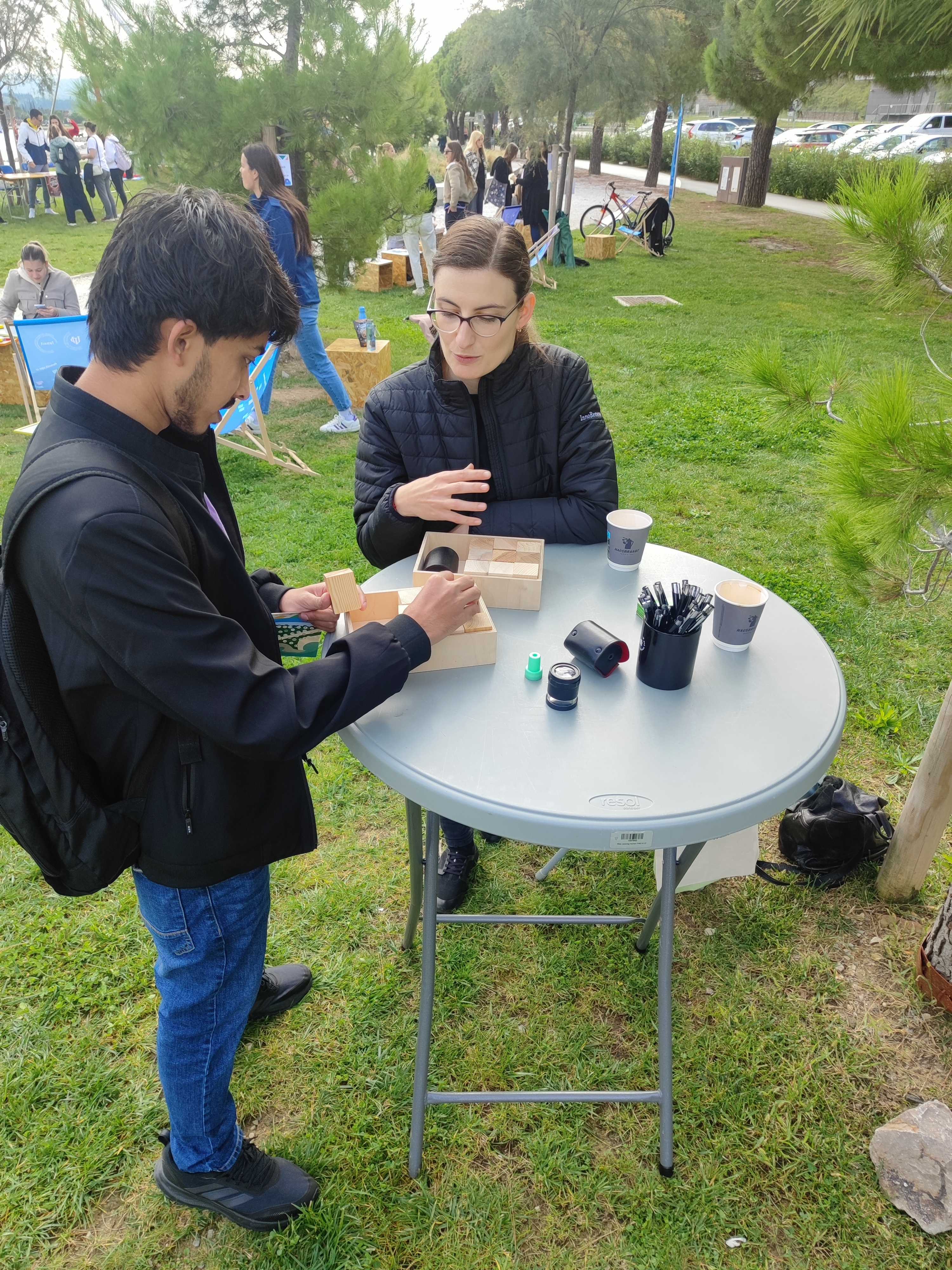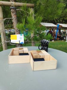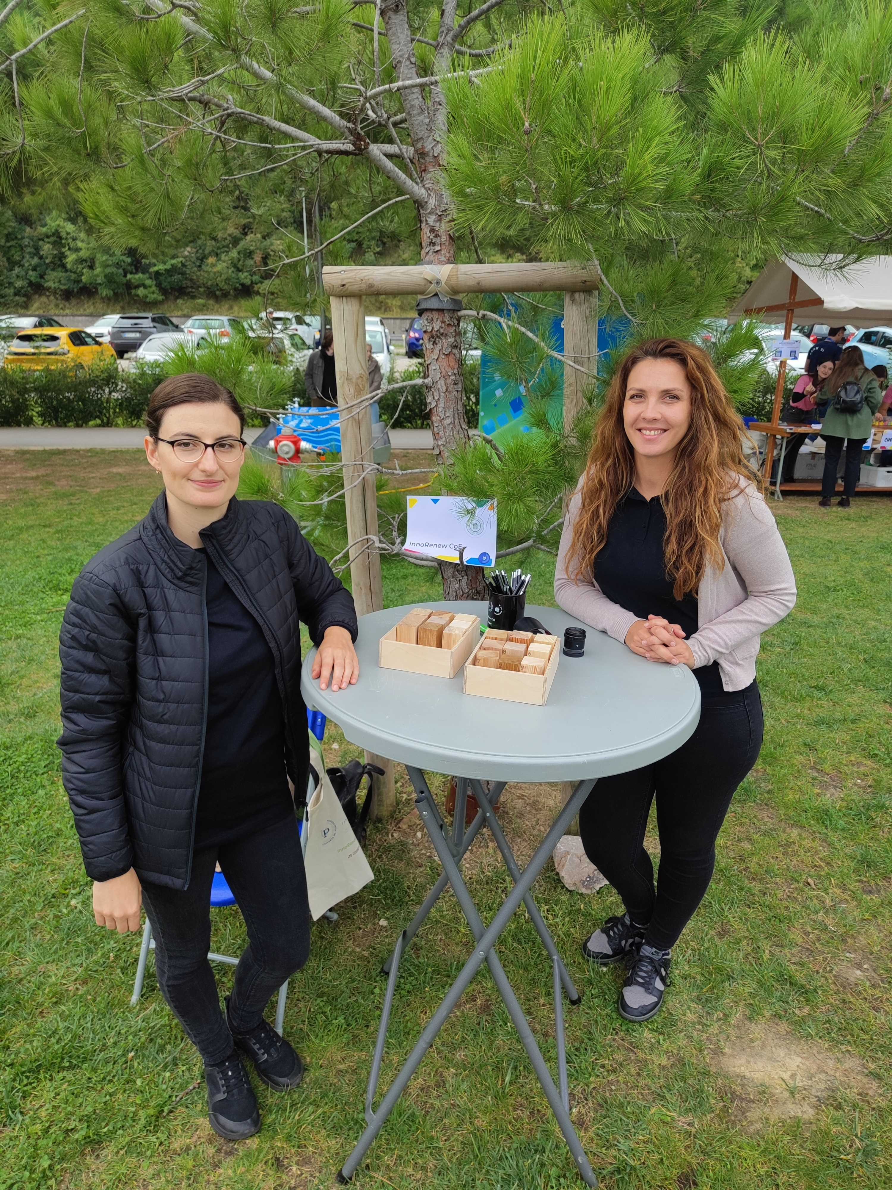 Amina Selmanović and Olga Srejić from InnoRenew CoE, UP IAM, took part in the event and presented InnoRenew CoE. They prepared different wood samples for participants, and they had to guess both the species and the approximate age of each piece.