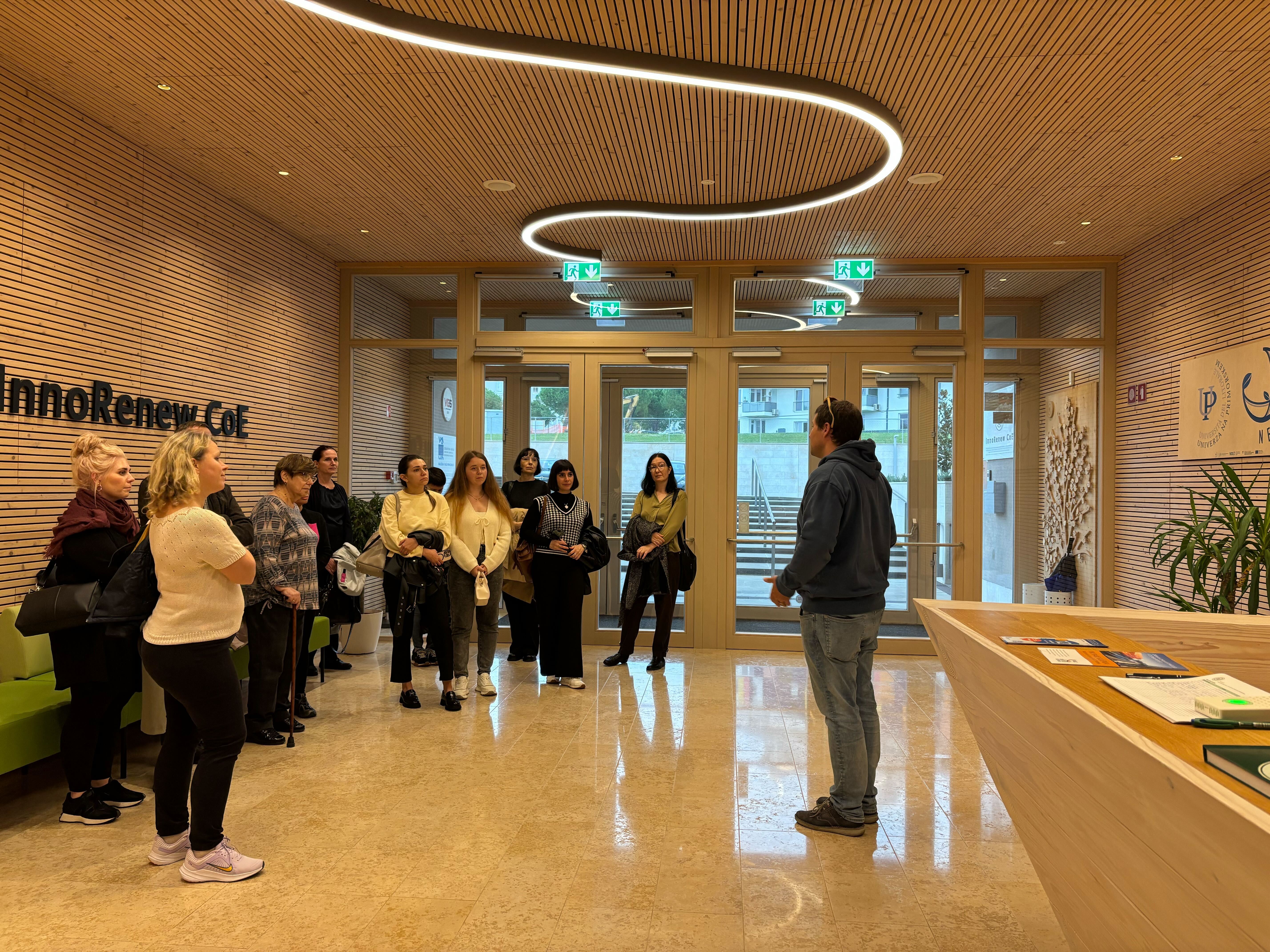 Dr. Rok Prislan, scientific associate at InnoRenew CoE, UP IAM, welcomed in the InnoRenew’s building a group of Promoting English Readiness For Effective Care and Trust of Nurses (PERFECT) project partners. As part of the event Learning, Teaching, and Training “Teaching English for Healthcare”, which is held from 20–24 October 2025 at the University of Primorska they visited also the InnoRenew CoE.