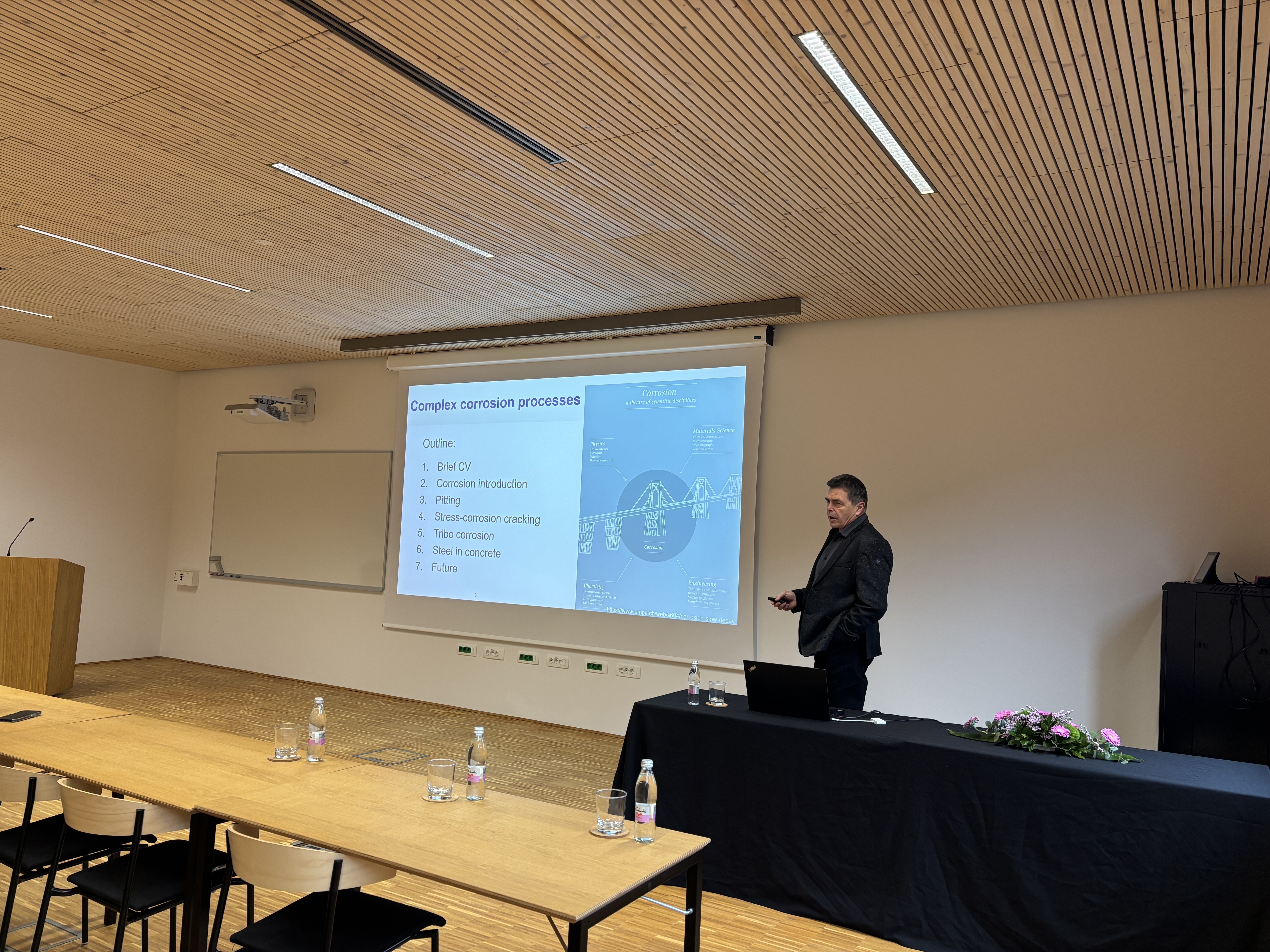 He delivered the inaugural lecture entitled »Complex corrosion processes«, in which he presented the significance of metal corrosion in modern technologies, focusing on localized and dynamic processes such as pitting, stress-corrosion cracking, tribo-corrosion and corrosion in concrete, along with key research findings from the past two decades and future research directions.