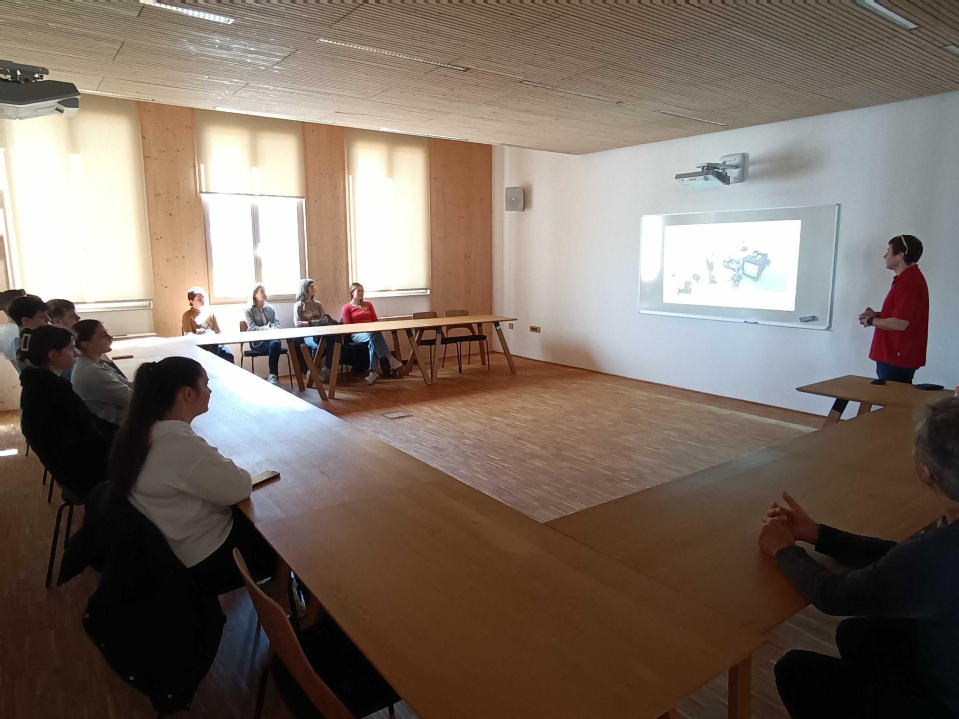 Students visited InnoRenew CoE, UP IAM as part of the Noise course. Dr. Prislan delivered a lecture, introducing them to the research activities and main focus areas. This was followed by a tour of the building and research laboratories, with a special focus on the acoustics laboratory. During the visit, they learned about current research topics and the advanced equipment used by researchers.