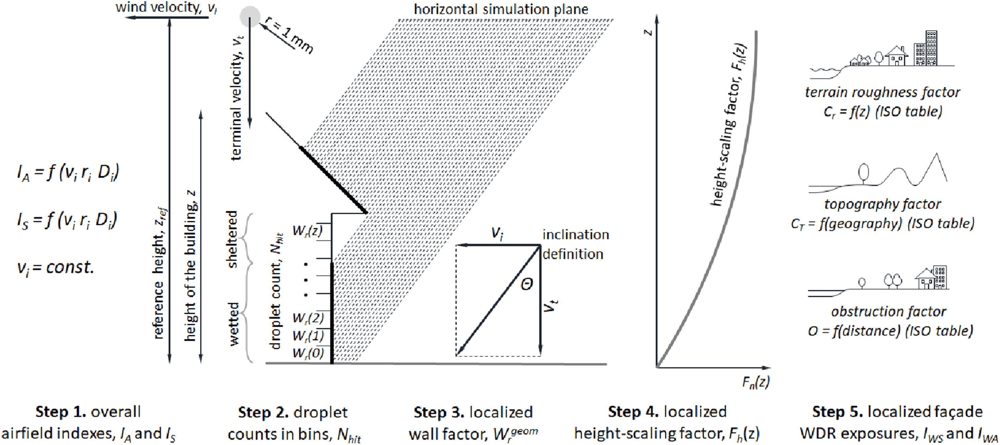 In the article they present a BIM-integrated method for modelling wind-driven rain exposure on building facades using geometry-based ray tracing. The study introduces a workflow that replaces tabulated wall-factor coefficients from the ISO 15927-3 standard with facade-specific exposure values derived directly from building geometry within the BIM environment. The results show that the method can capture facade sheltering effects and spatial differences in rain exposure with accuracy close to computational fluid dynamics simulations, while remaining fast enough for use in early-stage building design and durability assessment.